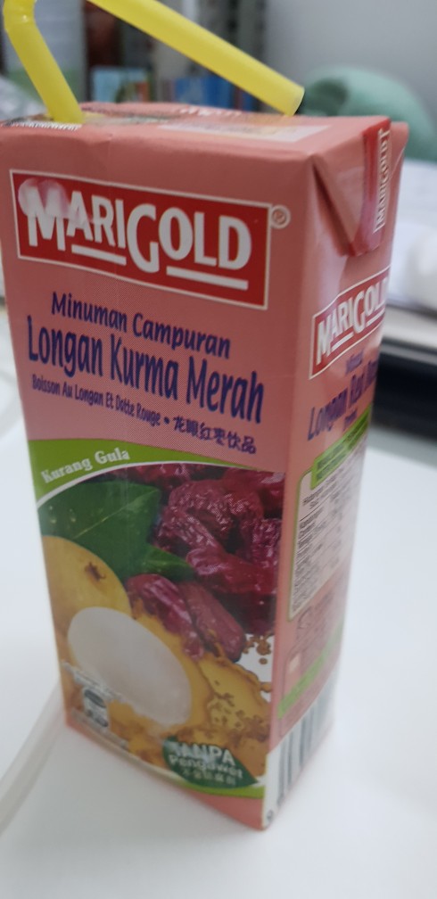 Ambil je marigold longan kurma merah air kotak 250ml (para suami take note ya.